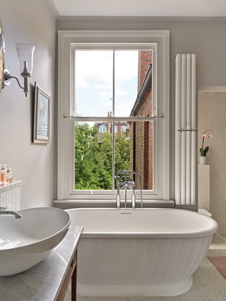 On the upper floor, Sashed fitted sash windows to both the bedrooms and bathrooms. As with the ground floor, all windows were finished in white for a consistent, conservation-appropriate appearance.